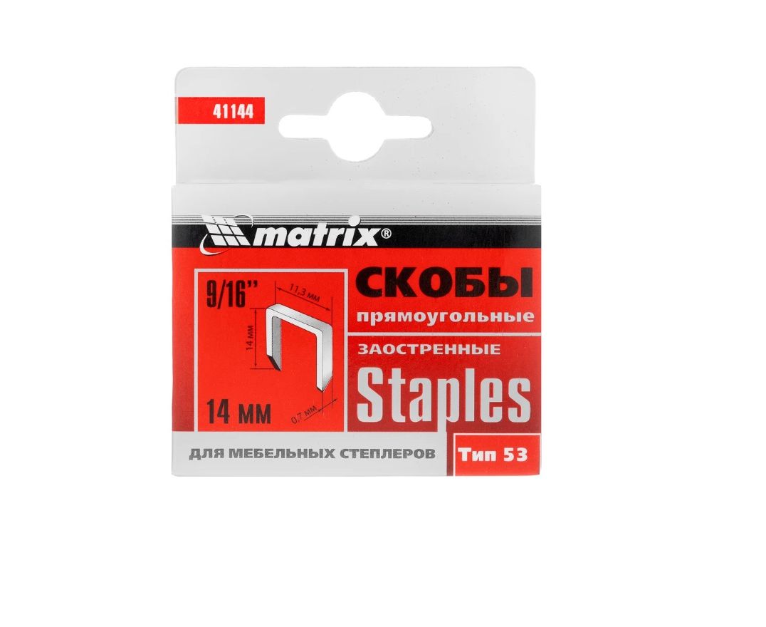 Скобы заостренные MATRIX 41144 является сменным элементом для мебельных степлеров. Применяется для скрепления между собой различных материалов. Наконечник скобы заострен для лучшего вхождения в материал. Тип скобы - 53. Количество в упаковке - 1000 шт.