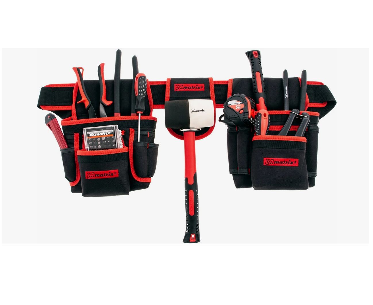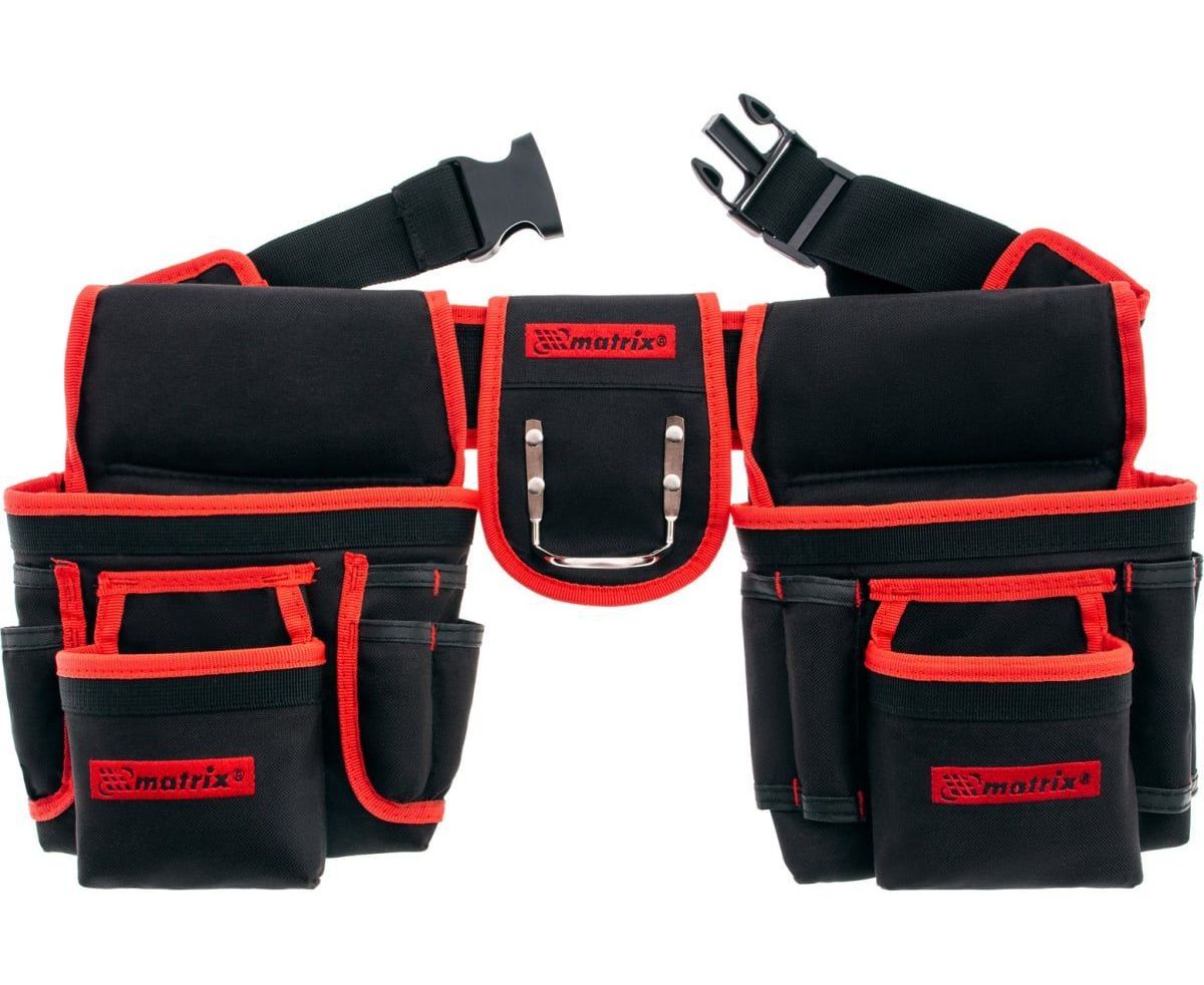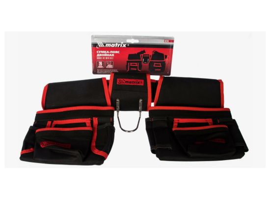 Двойная сумка-пояс Matrix 90240 с 20 карманами и держателем для молотка позволяет всегда иметь при себе необходимые инструменты, при этом оставляя руки свободными. Сумка-пояс пригодится строителям и монтажникам, а также будет полезна в быту.
