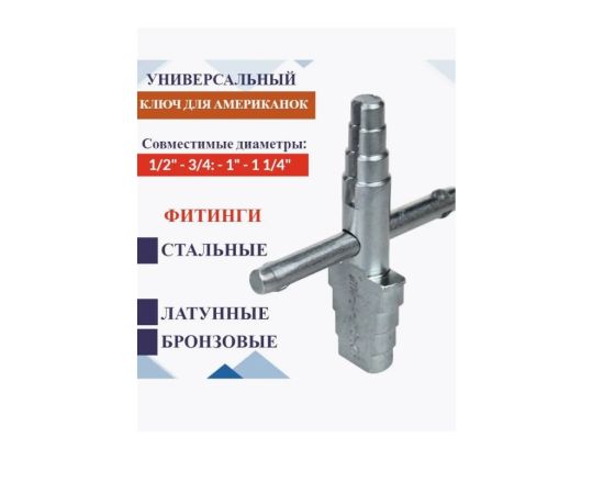 Предназначен для монтажа разъемных крановых соединений типа "американка" диаметром 3/8", 1/2", 3/4", 1", 1 1/4".