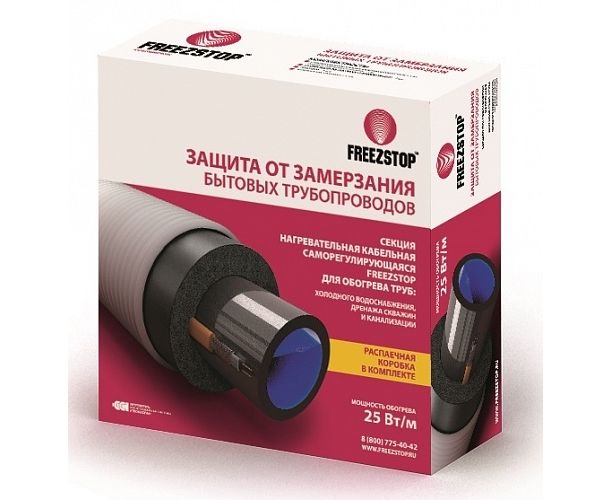 Нагревательная секция для предотвращения замерзания бытовых трубопроводов (водопроводных или канализационных): в секциях применяется кабель нагревательный саморегулирующийся, меняющий собственное тепловыделение в зависимости от внешних условий, благодаря этому систему обогрева трубопроводов можно применять на трубе с разными температурными режимами (часть трубы на улице, часть - в подвале дома); линейная мощность кабеля составляет не менее 25 Вт/м; устанавливается на трубопровод под теплоизоляцию; предназначены для устройства на трубопроводах, диаметром не более 150 мм.