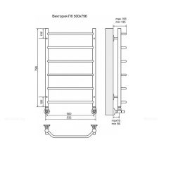 Полотенцесушитель Виктория 500х800 (600м/о) бок.подкл. ПСО-07-04