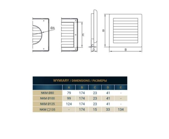 • ширина и высота — 174 мм;
