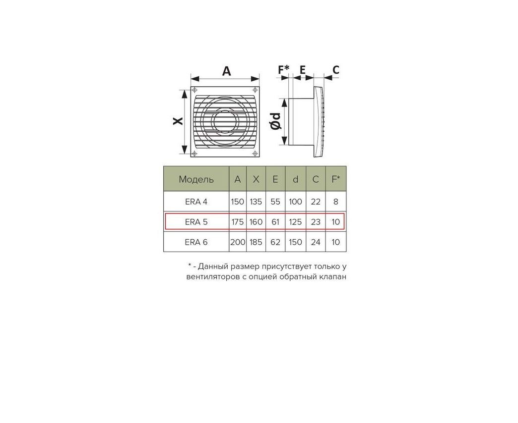 Вентилятор вытяжной ERA 5S без выкл, 125мм 20 Вт STIL/STYL 125S 007-0003 / SQ1807-0002 33975