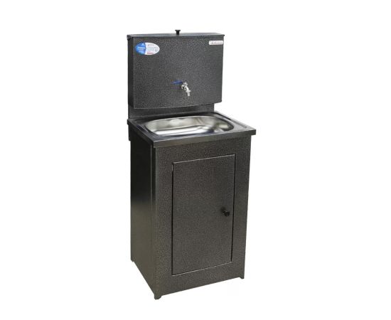 Компактный дачный умывальник с водонагревателем предназначен для мытья рук и фруктов на загородных участках. Он также может использоваться в гараже или мастерской.