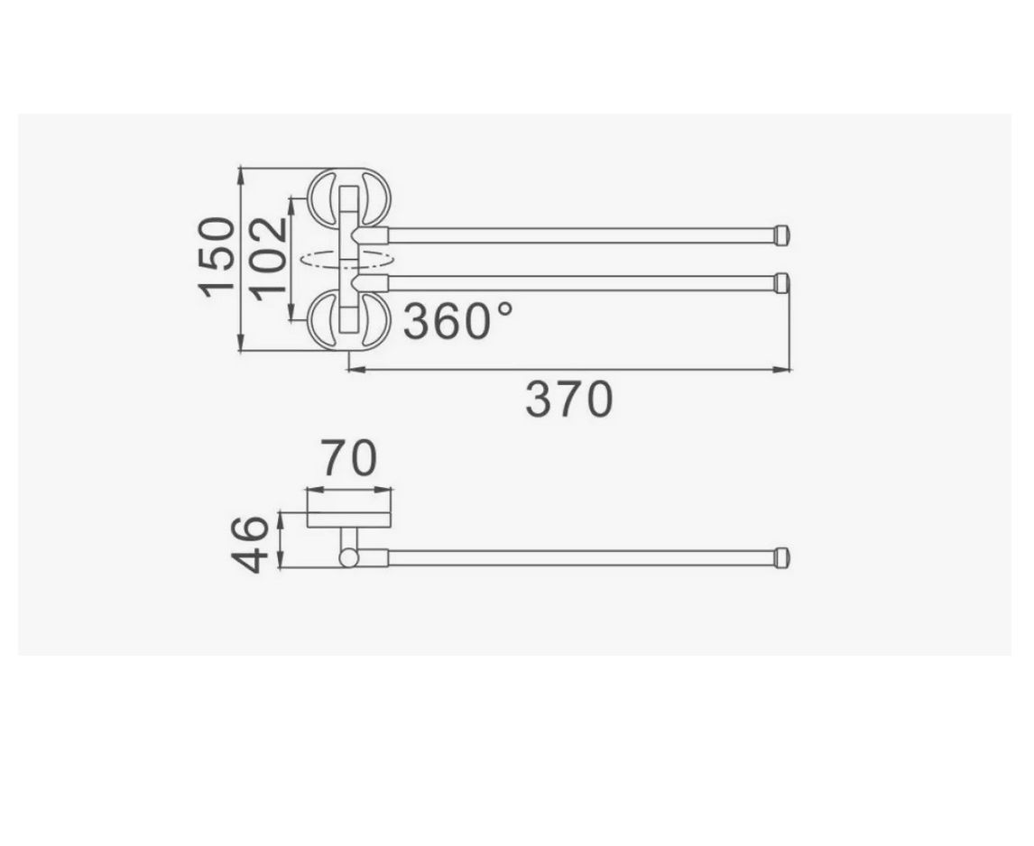 Двойной поворотный держатель для полотенец, изготовлен из латуни, цвета хром. Предназначен для размещения полотенец на кухне и в ванных комнатах.