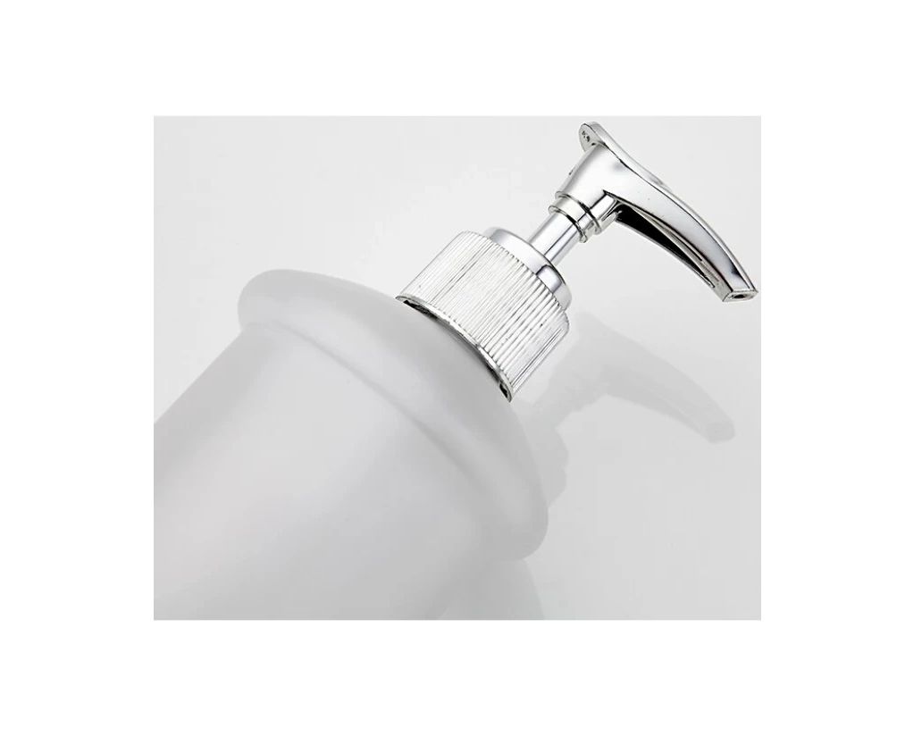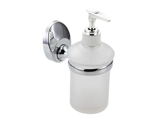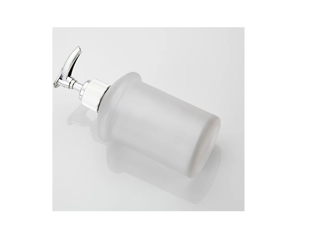 Дозатор Frap F1627 из матового стекла настенный. Изделие дополненно настенным держателем из латуни с покрытием хром. В комплекте есть необходимый крепеж для быстрого монтажа. Дозатор жидкого мыла Frap F1627 является не только необходимым предметом, но и служит украшением помещения. Благодаря мелким приспособлениям и элементам дизайна создаётся та самая атмосфера уюта. Изделие изготовлено из латуни и стекла, прослужит долгое время.