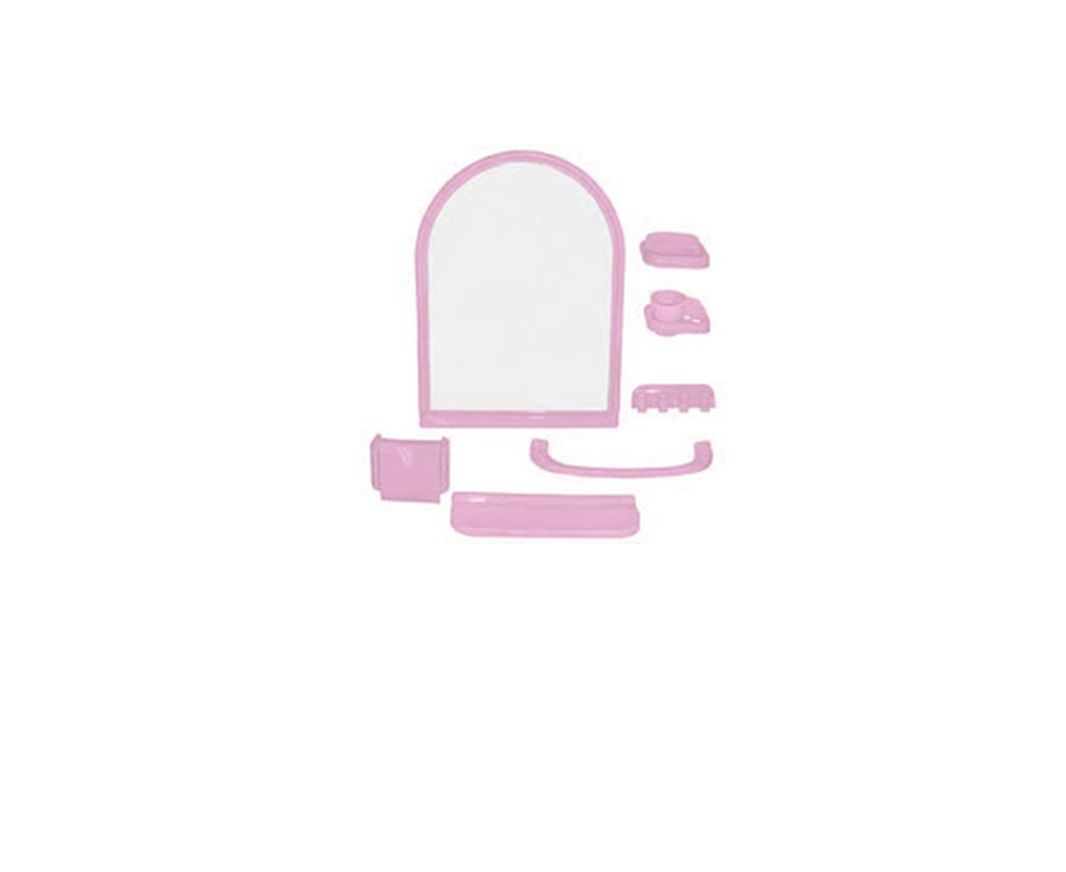 • Комплектация: Зеркало,полка,мыльница, бумагодержатель, крючки,держатель з/щеток,стакан