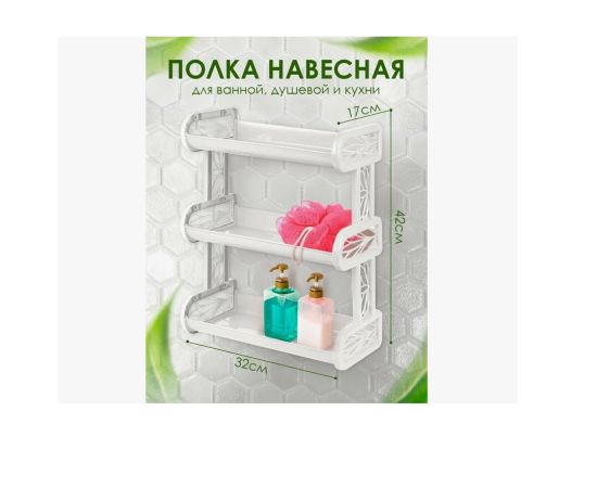 Полка для ванной трёхсекционная Regular «Белое облако» KL168312048 — решение для организации пространства ванной комнаты. Легко собирается: три полки крепятся к стенкам без использования инструментов; после сборки полка крепится к стене на саморезы, которые входят в комплект, или на присоски (присоски также входят в комплектацию).