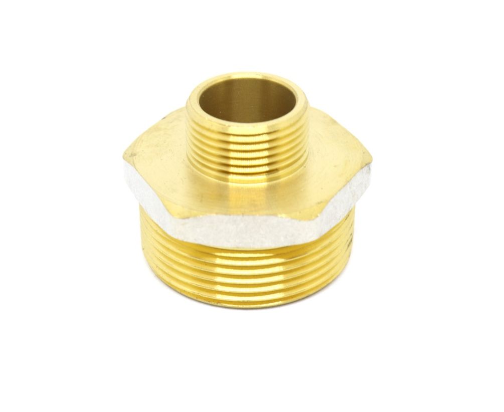 Бочонок латунный переходной предназначен для соединения резьбовых элементов разных диаметров. Резьба – наружная/наружная, цилиндрическая трубная соответствует ГОСТу 6357 (ISO 228, EN 10226), совместима также с наружной конической трубной резьбой по ГОСТу 6211 (ISO R7). Рекомендуется для эксплуатации в неагрессивных средах. Материал изготовления — высококачественная латунь, марки CW617N.Фитинги TIM выполнены в конфигурациях усиленного типа с увеличеной толщиной стенок и концевых буртов.