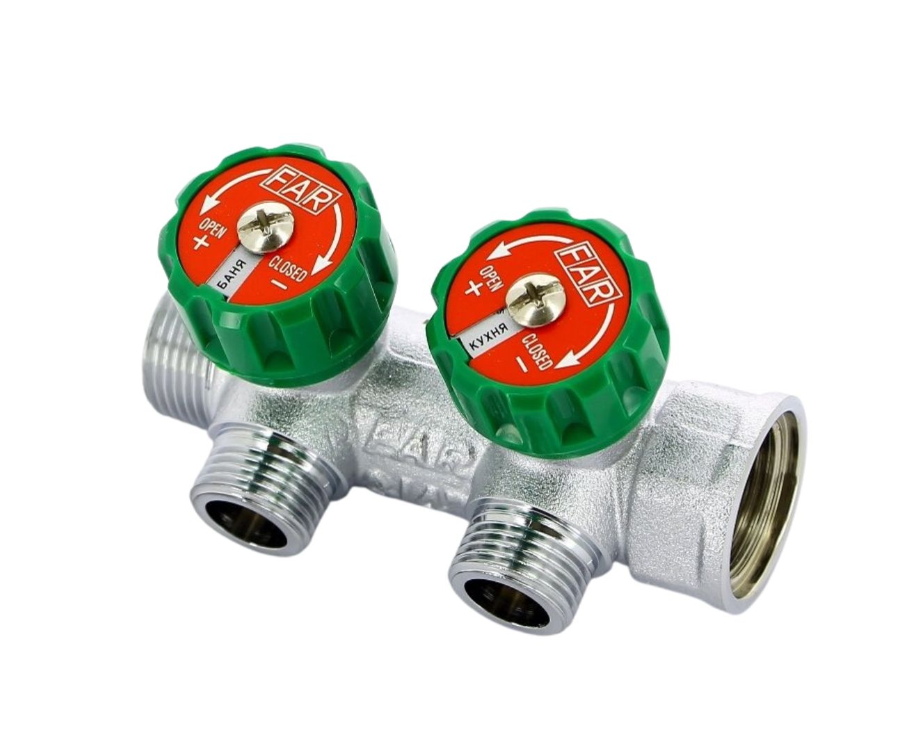 Хромированный коллектор FAR с вентилями - технический элемент, предназначенный для подвода, регулирования и распределения рабочей среды от основного трубопровода, чаще всего в системах отопления и водоснабжения.