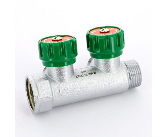 Коллектор увеличивает эффективность, удобство использования и ремонтопригодность системы. Корпус коллектора изготовлен из латуни CW614N с хромированным покрытием, материал вентиля - из пластика. Наличие вентилей позволяет регулировать напор воды для каждой точки разводки отдельно.