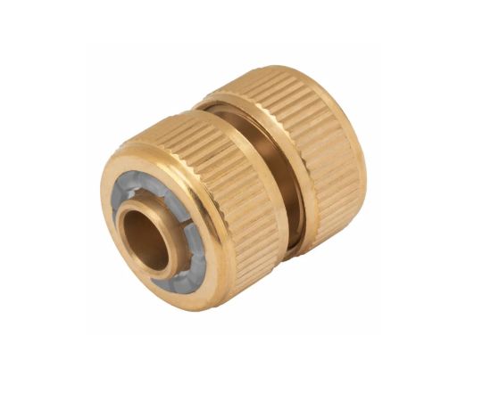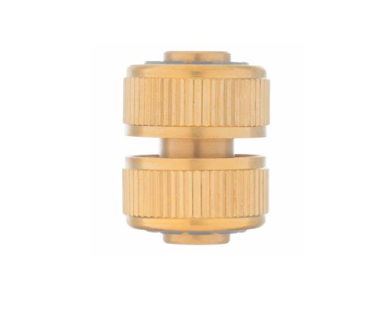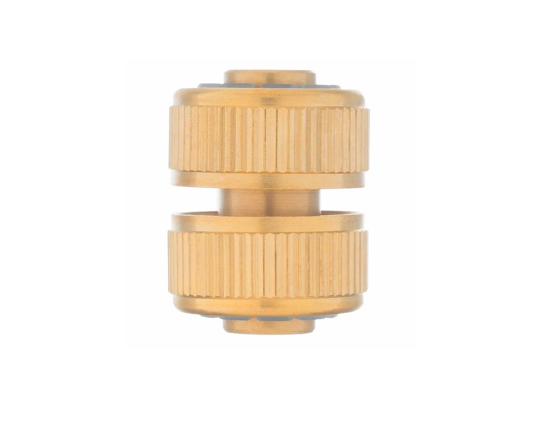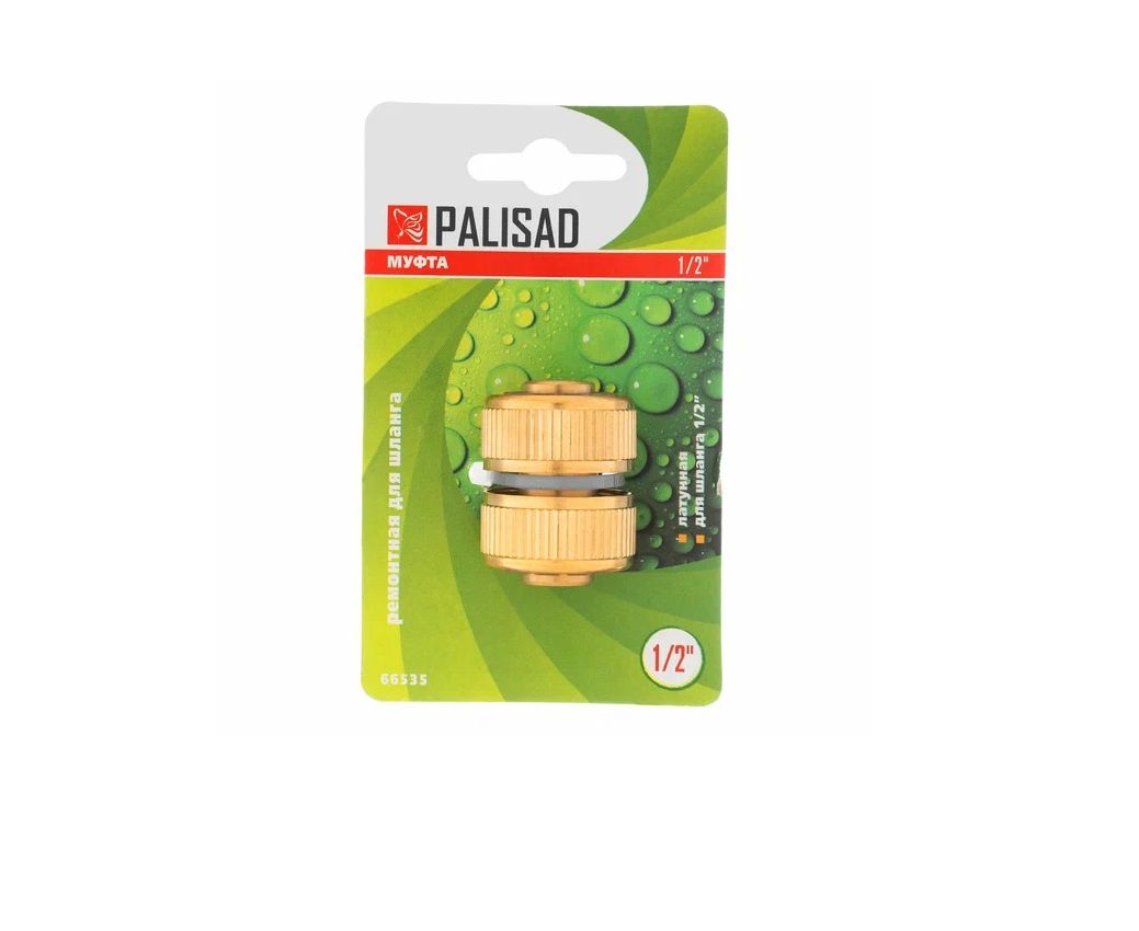 Ремонтная латунная муфта Palisad 66535 позволяет соединить два шланга диаметром 1/2 дюйма. С её помощью можно удлинить поливочную линию или отремонтировать повреждённый участок шланга.