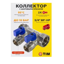 Коллектор с шаровыми кранами 3/4х1/2-2 выхода под конус MV-3/4-N-2