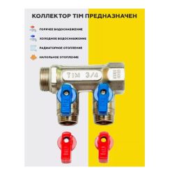 Коллектор с кранами 3/4х1/2х3/4-2 вых.