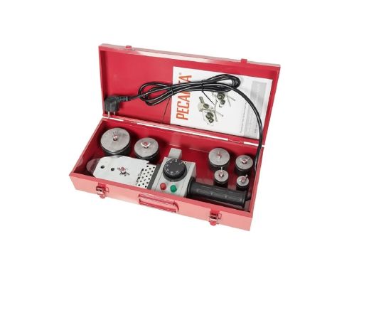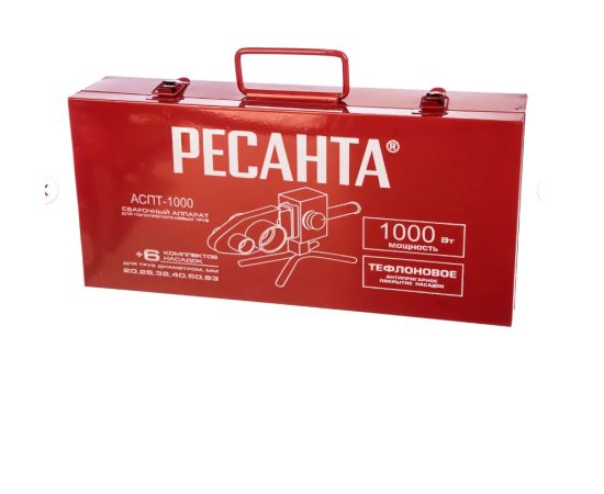 АСПТ комплектуется автоматическим терморегулятором, который легко поддерживает заданную температуру в диапазоне от 0 до 300°C. Принцип работы терморегулятора отличается простотой. При перегреве он отключает нагрев, а при остывании – нагревает аппарат. Благодаря наличию нагревательных элементов мощностью 1000 Вт, аппарат за короткое время выходит на рабочую температуру. Ресанта АСПТ-1000 комплектуется металлическим кейсом, который удобен при хранении или транспортировке инструмента. В комплект входят насадки для работы с трубами диаметром от 20 до 63 мм. Наличие
