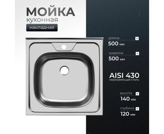 Мойка из нержавейки накладная UKINOX ECO500.500 500х500х120мм