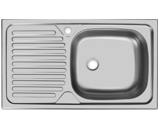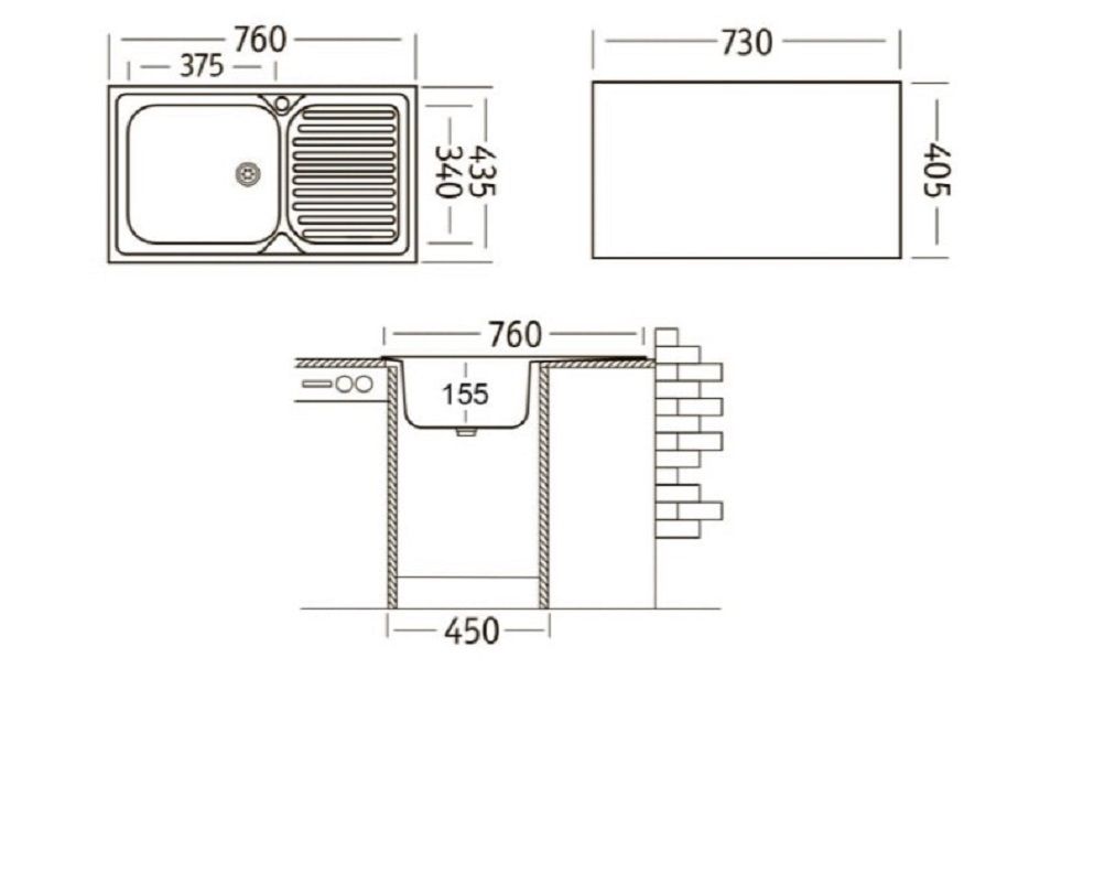 Мойка врезного способа монтажа имеет размеры 760х435 мм. Такая раковина идеально подойдет для небольшой кухни.