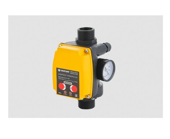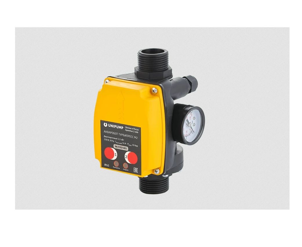 Блок управления насосом ТУРБИПРЕСС М2 UNIPUMP 73463 является универсальным блоком управления насосами, обеспечивающий их защиту. Функциональные возможности: Автоматическое включение насоса при снижении давления в системе ниже заданного порога Рмин; Автоматическое выключение насоса при достижении в системе давления Рмакс; Защита насоса от работы в режиме «сухого хода» и осуществляет серию пробных пусков для выхода из режима аварии; Защищает систему водоснабжения от избыточного давления более 10 бар; Стабильно работает при пониженном напряжении в электрической сети до 170 В.
