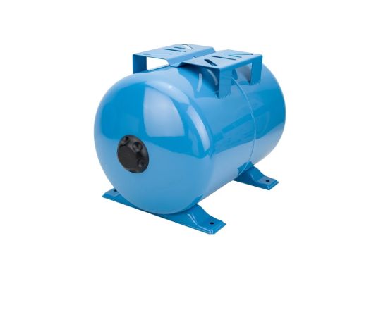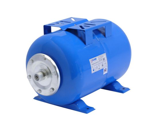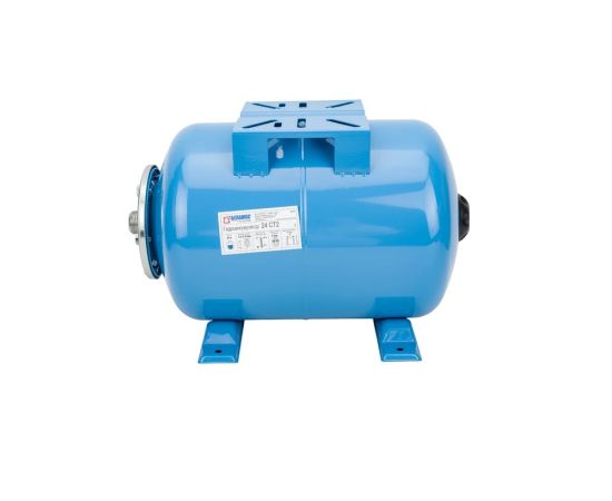 Гидроаккумулятор горизонтальный 24СT2 БЕЛАМОС представляет собой металлический бак, предназначенный для накопления воды. Подходит для использования с погружными и поверхностными насосами мощностью до 1000 Вт. Устройство компенсирует скачки давления в системе водоснабжения. Если такой прибор установлен, то насос включается не каждый раз при открытии крана, что значительно повышает его ресурс. Корпус и фланец агрегата выполнены из стали толщиной 0,8 мм с порошковой окраской, что обеспечивает ему надежность и защиту от коррозии. Внутри воздушное и водное пространство разделяются мембраной, соединяющейся с корпусом с помощью фланца. Мембрана изготовлена из бутилированной резины, которая по сравнению с обычной резиной не гниет и не трескается. Для предотвращения развития бактерий необходимо периодически скачивать воздух из бака. Необходимая модель гидроаккумулятора выбирается в зависимости от объема потребляемой воды и мощности насоса.