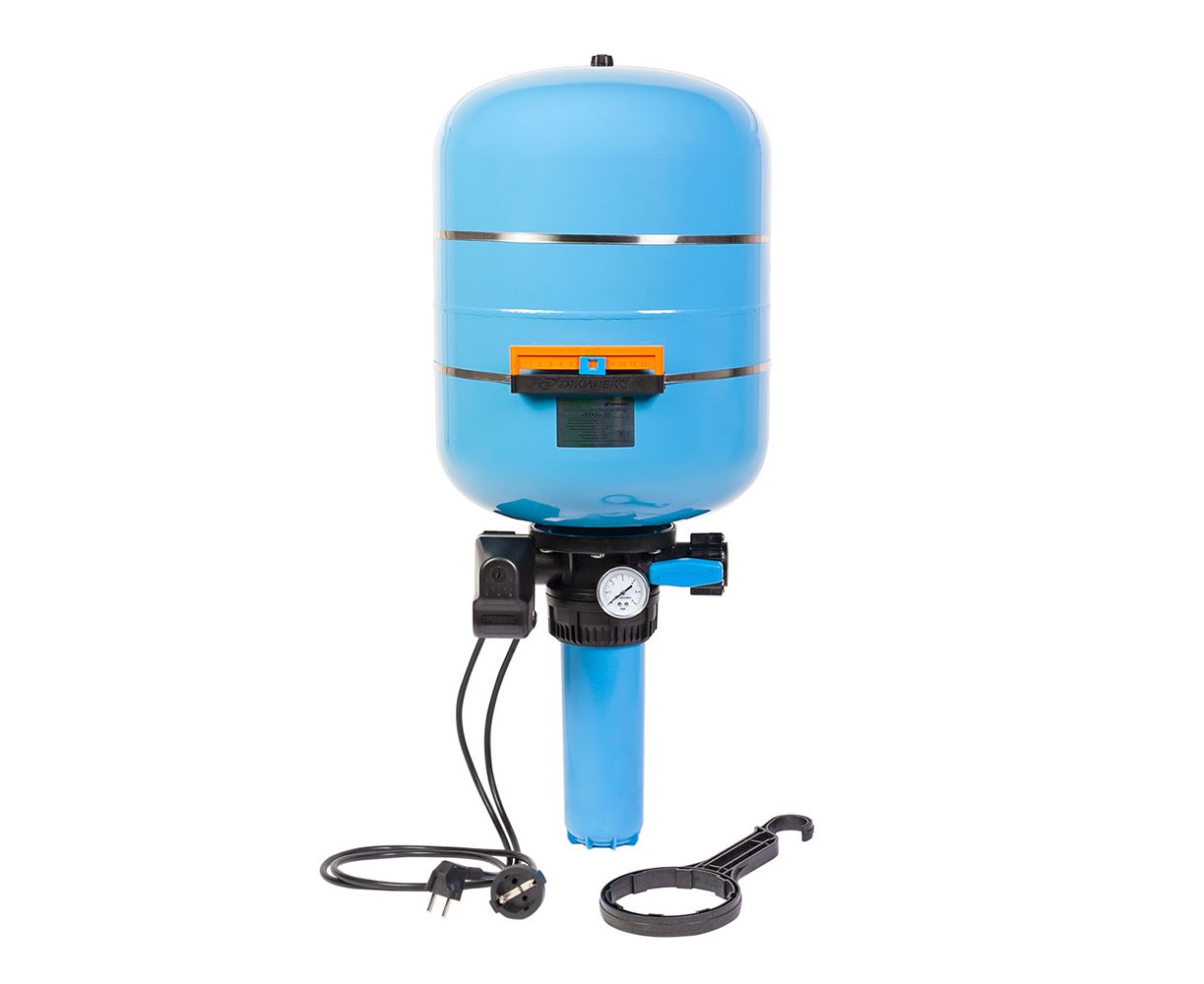 Джилекс "КРАБ" (50 литра) - Комплексное Решение Автоматизации на Баке. Предназначен для автоматического управления включением и выключением электронасосов, поддержания заданного давления в системах водоснабжения и предварительной фильтрации воды.