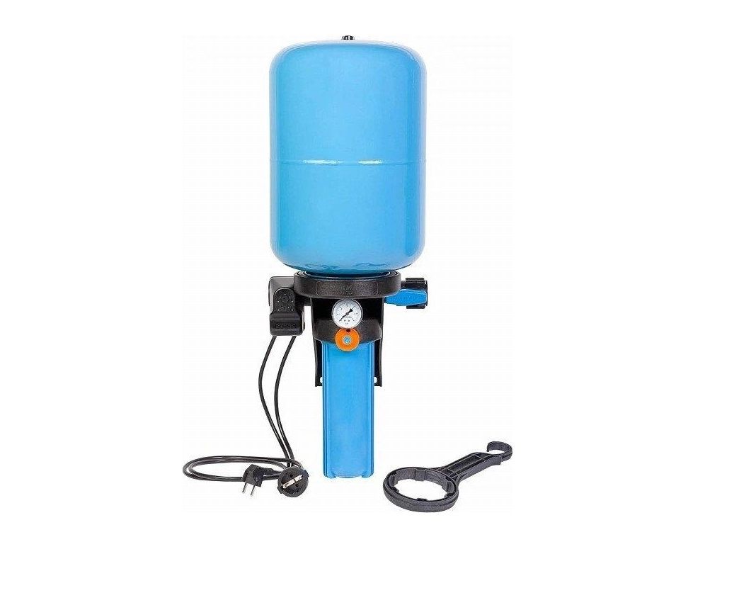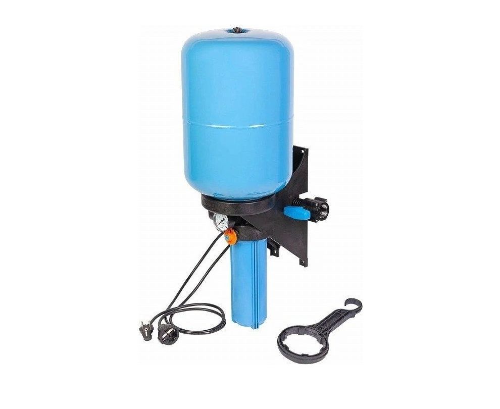 Предназначен для поддержания заданного давления в системах водоснабжения с предварительной фильтрацией воды. Легкий и удобный монтаж. Не требует дополнительной настройки. Автоматическое управление включением/выключением электронасоса. Полный комплект для автоматизации системы водоснабжения. Предварительная фильтрация воды. Календарь смены картриджей фильтра. Вся система устойчива к коррозии. Позволяют подключаться в любом удобном месте магистрали вне зависимости от направления потока воды. Объем бака 24 литра.