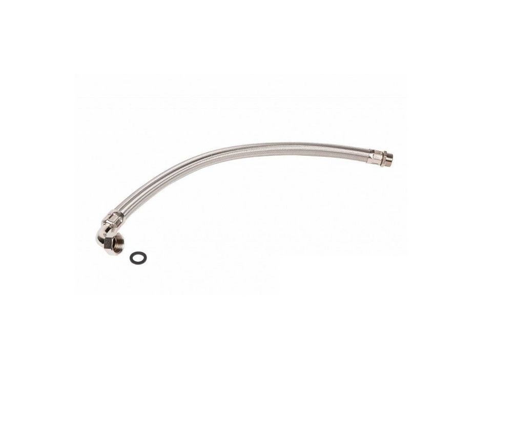 Нержавеющая оплетка, повышенная стойкость к скручиванию. Присоединительный размер - 1 дюйм. Угол 90 градусов для удобного подключения к гидроаккумулятору.