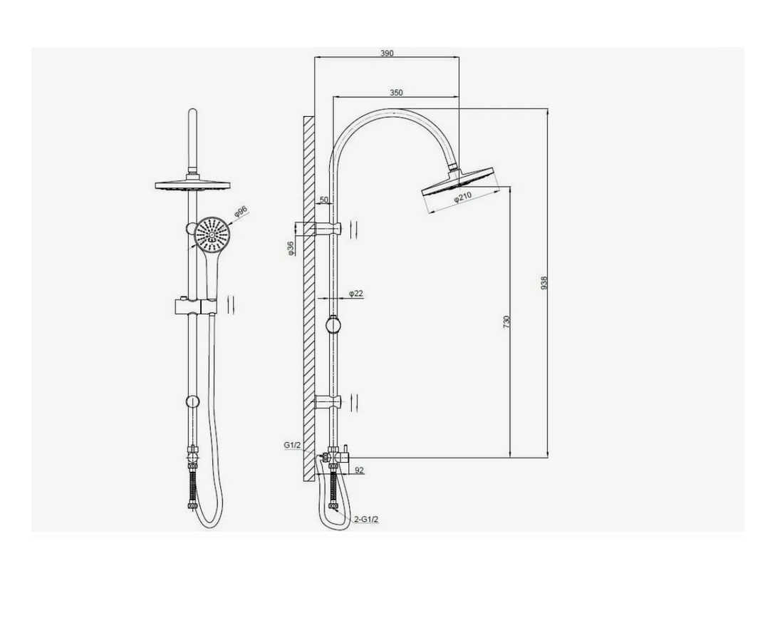 • Конструкция: изогнутая штанга с массивной насадкой, фиксируется на стене, оснащена смесителем. Вода равномерно распределяется между форсунками, создаёт эффект тропического дождя.