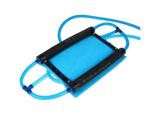 Как использовать: повесить душевую лейку над собой, а коврик положить под ноги. Вставить конец шланга в ёмкость с водой и двигаться на коврике, в котором расположены насосы: поочерёдно переносить массу тела сначала на одну, потом на другую ногу.