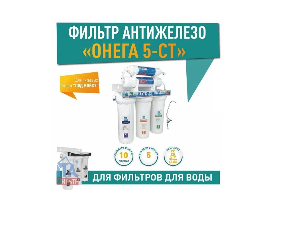 «Онега-5ст-Антижелезо» F10520-Fe — питьевая система очистки воды, которая обеспечивает пятиступенчатую очистку. Задерживает механические примеси, удаляет соли железа, а модули сорбционной и комплексной очистки удаляют органические и неорганические загрязнения, соединения различных металлов и другие примеси.