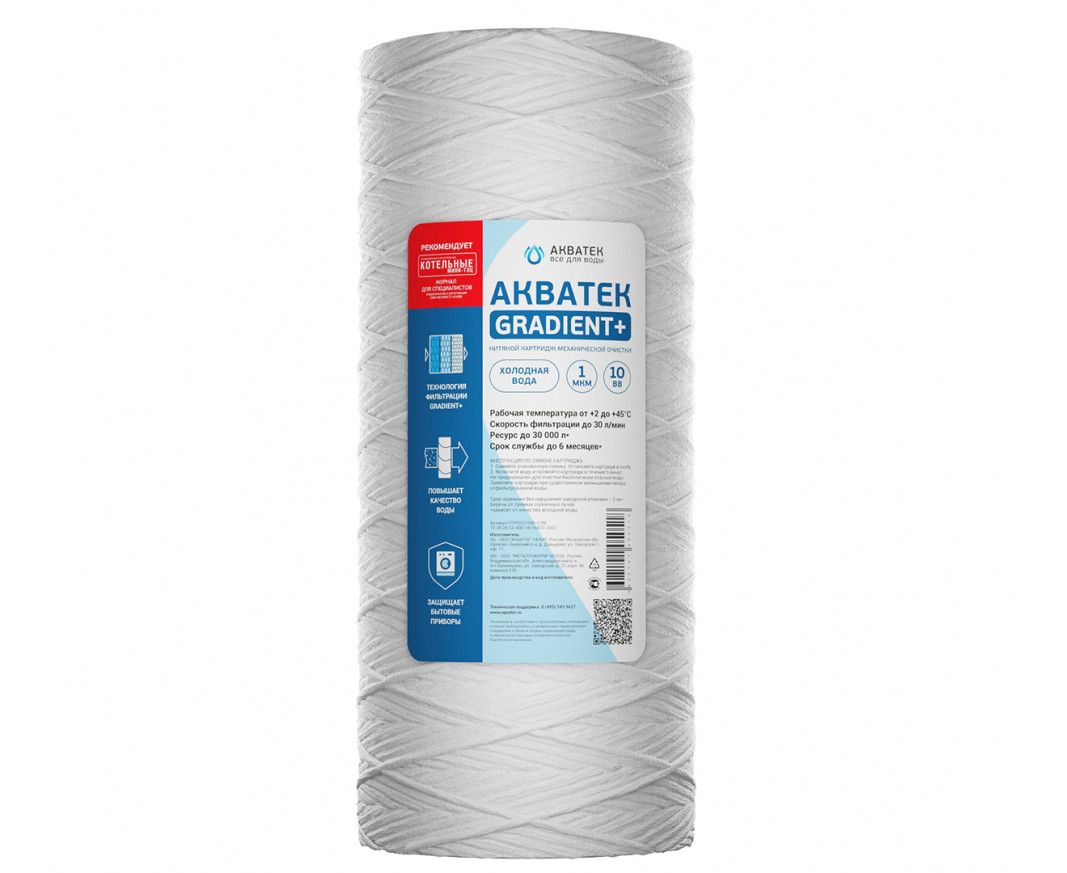 Картриджи с технологией фильтрации GRADIENT+ обладают структурой с равномерно нарастающей плотностью. При этом не теряются пропускная способность картриджа и напор воды в системе, а также эффективно используется весь объём фильтрующего материала.