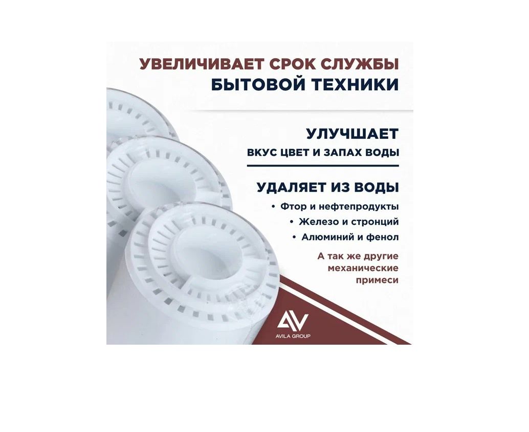 Картридж подходит для установки в магистральные фильтры размера 10SL, а также в различные питьевые системы в качестве второй ступени очистки.