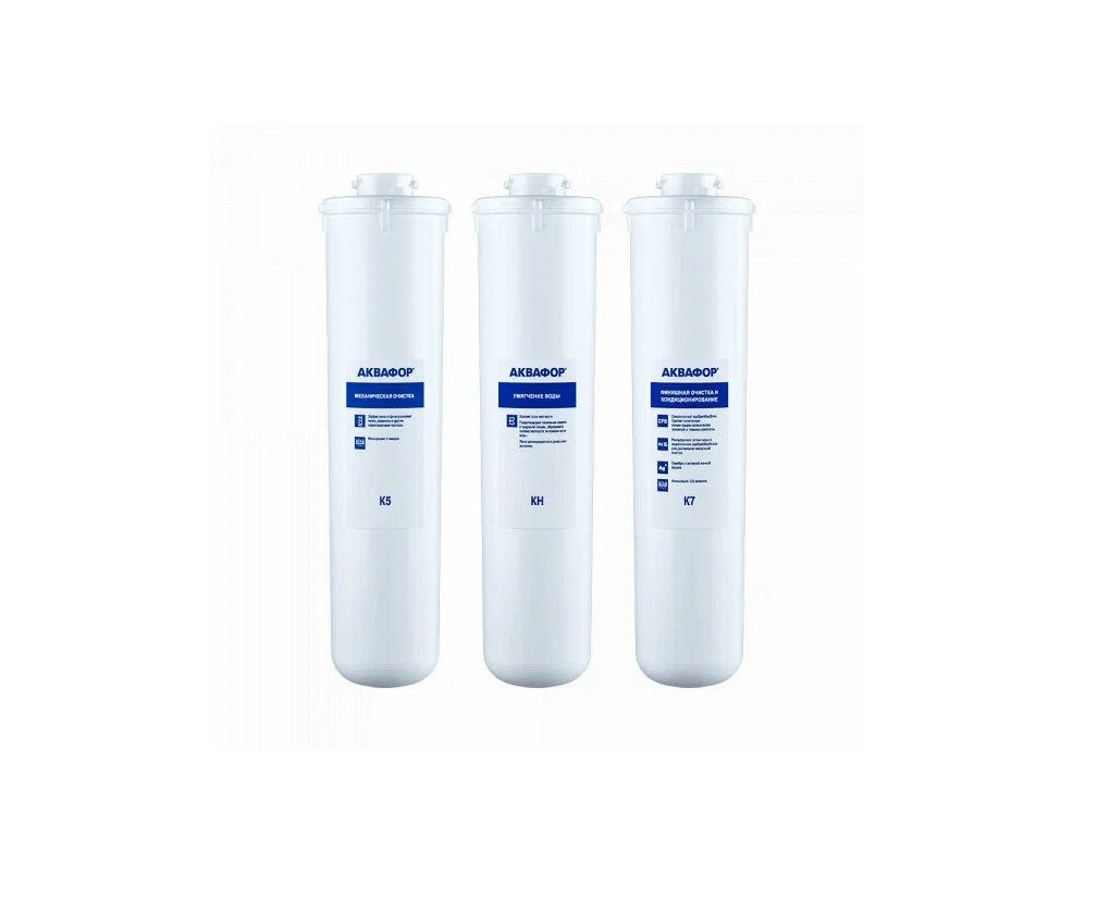 Комплект сменных модулей «Аквафор» К5-КН-К7 предназначен для глубокой очистки и умягчения жёсткой воды. Подходит для воды с повышенным уровнем нерастворённых примесей, например ржавчины и мутности.