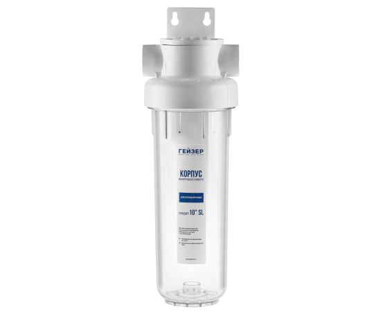 Корпус фильтра Гейзер Гарант 3/4" 10SL рассчитан на работу под давлением и установку на входе в систему холодного водоснабжения. Выполнен из суперпрочного пластика ПЭТ пищевого класса, который обладает повышенной стойкостью к механическим повреждениям.