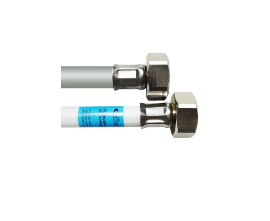 Присоединительный размер — 1/2", длина — 200 см, материал — сталь. Оснащена двумя гайками «папа» с внутренней резьбой размером 1/2 дюйма для соединения с водопроводной трубой и соответствующими гайками для подключения к смесителю.