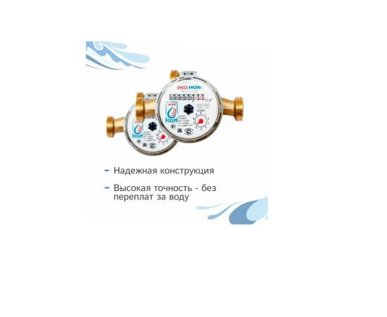 «ЭКО НОМ-15-110+КМЧ» с обратным клапаном — бытовой счётчик воды с антимагнитной защитой, монтажным комплектом и обратным клапаном. Предназначен для учёта потребления воды преимущественно в квартирах.