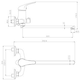 Смес. д/ванны TSB-118-95 длин.излив, двухвентильный.