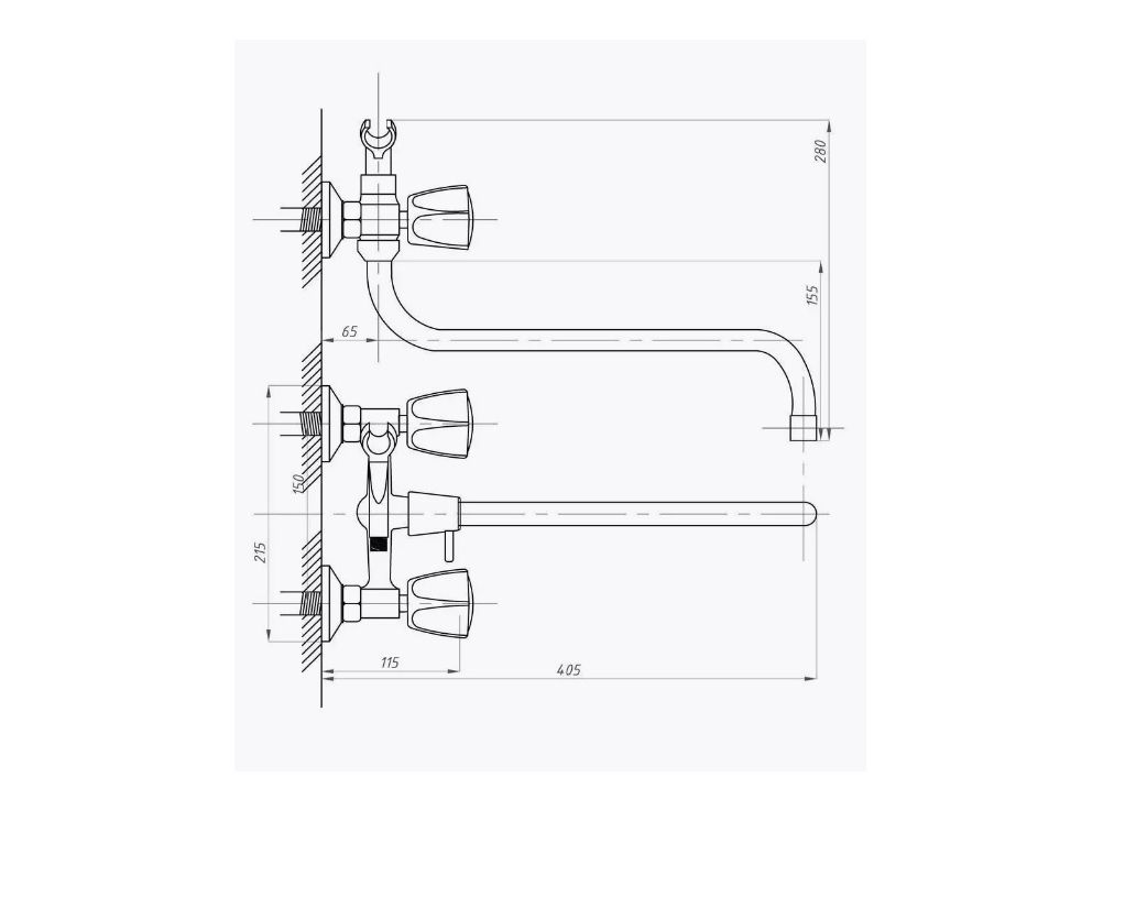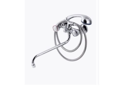 Двухвентильный пристенный смеситель для ванны из коллекции FAUST. Выполнен из сплава цветных металлов. Форма излива крана - округлая, изогнутая. Изделие имеет прочную конструкцию, надежное исполнение, долговечное покрытие. Цвет - серебро. В комплекте: эксцентрики, отражатели, дивертор-крепление для лейки душа, лейка.