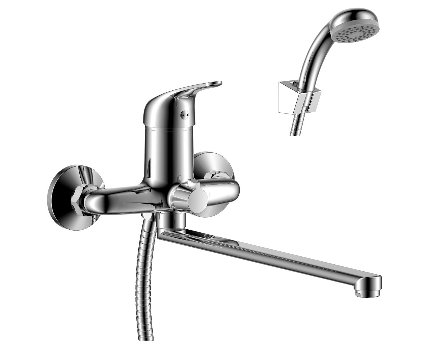 Смеситель предназначен для подачи воды в ванну, обеспечивает комфортное использование душа. Устанавливается на вертикальная поверхность.