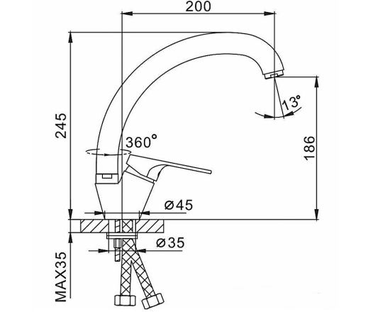 • Отверстия для монтажа под смеситель: 1 отверстие