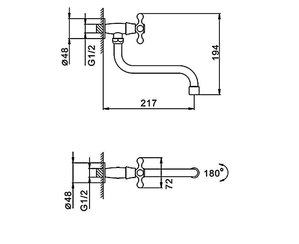 Настенный смеситель – вариант, который все чаще используется не только в ванных комнатах, но и на кухнях. К этому типу смесителей относятся функциональные, красивые, надежные изделия с традиционным оформлением. Материал прибора - латунь, проверенный материал, гарантирующий идеальное напыление хромированного покрытия. Излив данного прибора располагается под рычагом управления подачи воды.