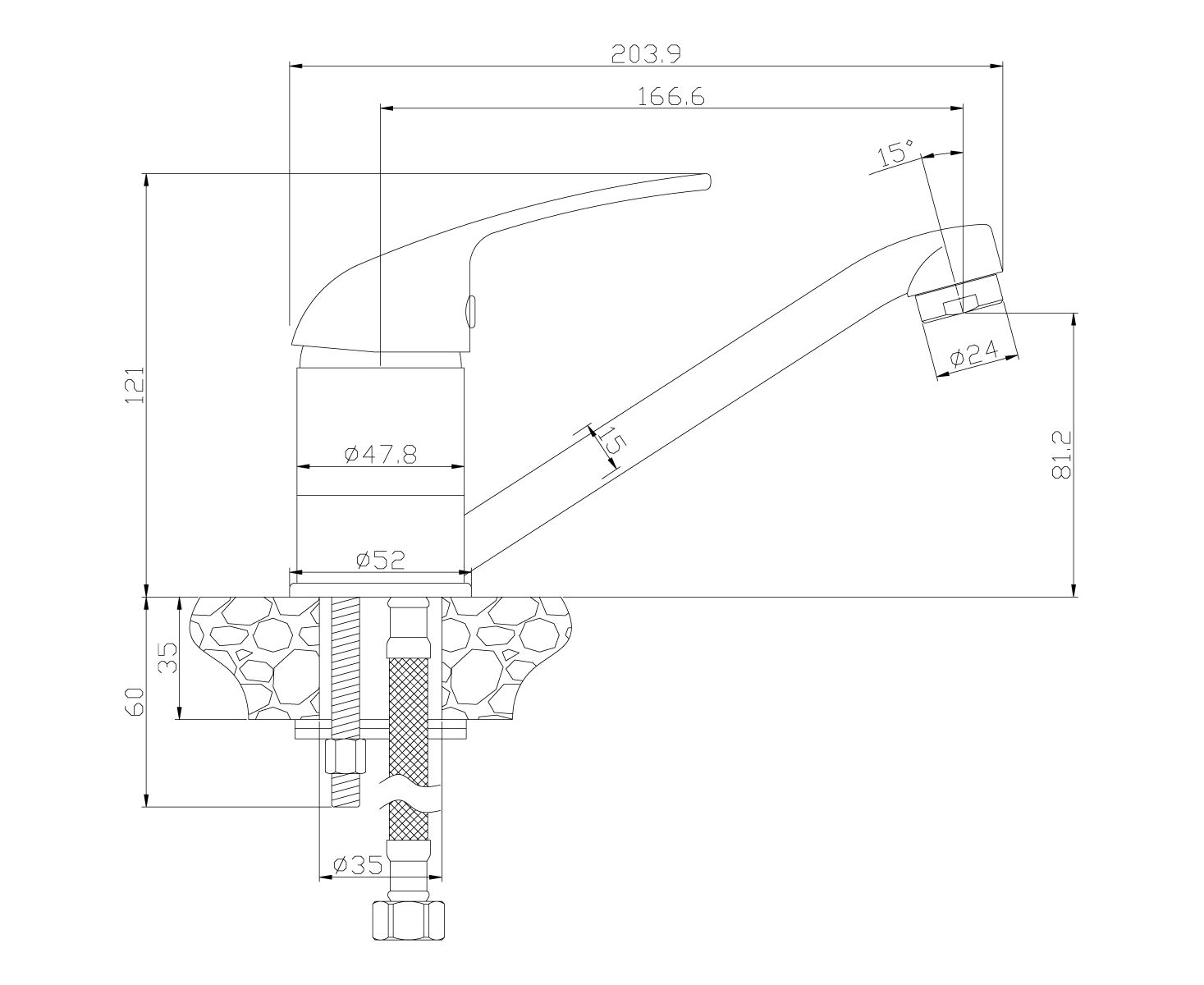 • высота излива: 81,2 мм;