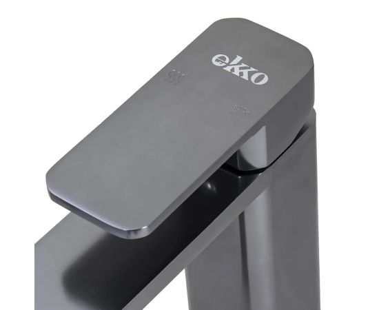 Смеситель кран для раковины производителя Ekko E1082-21 изготовлен из материала алюминий. Цвет темно-серый, покрытие сатиновое.