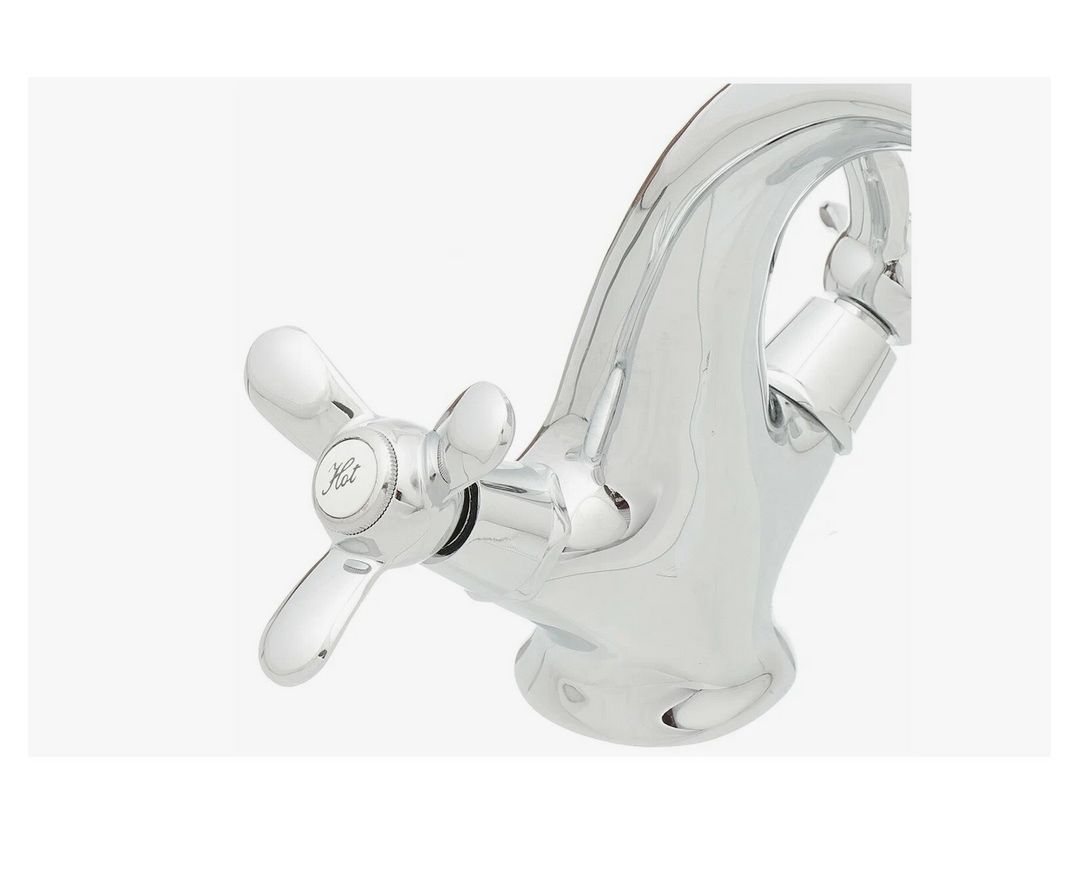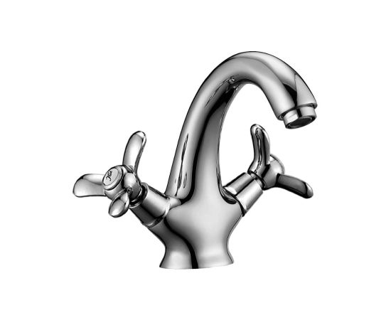 Смеситель для умывальника Rossinka Q02-61 — двухвентильный смеситель монолитного типа для монтажа на мойку (умывальник) в ванной комнате.