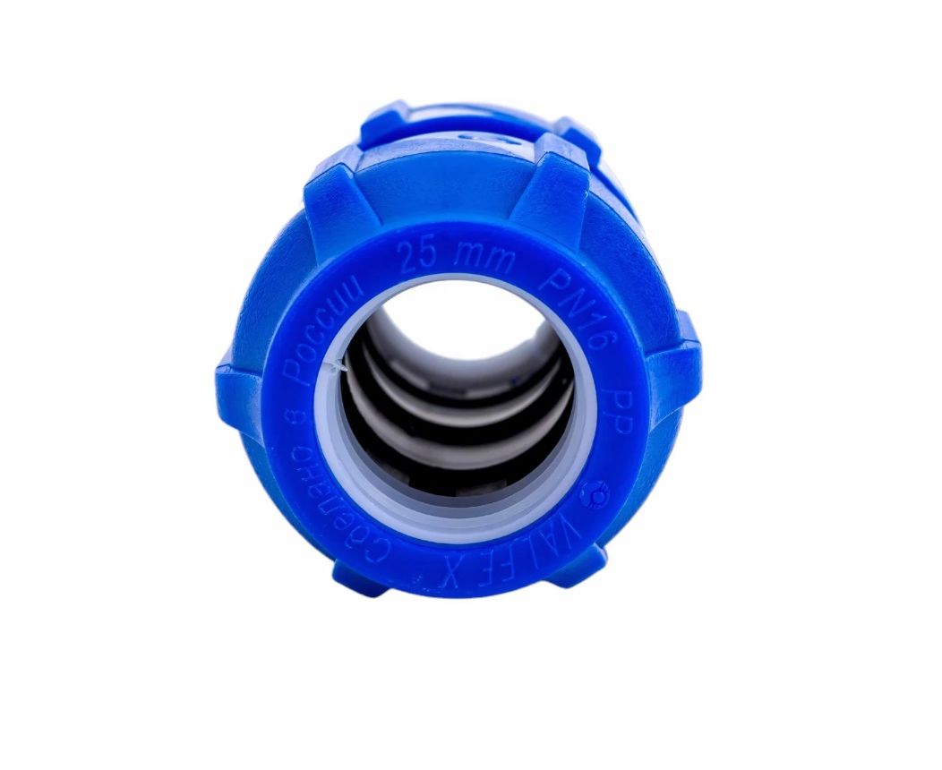 Компрессионная соединительная муфта VALFEX ПНД, 25 121001121025 выполнена из полипропилена и применяется для соединения полиэтиленовых труб кольцевого сечения по ГОСТ 18599 и/или ГОСТ 32415-2013.