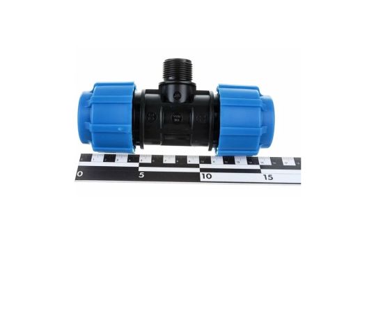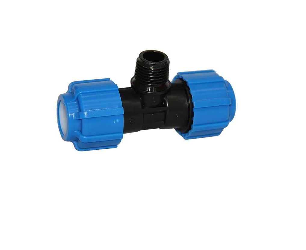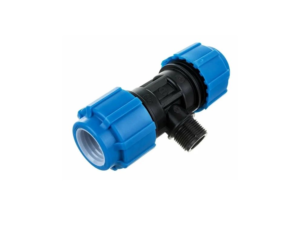 Тройник ПНД с наружной резьбой 32х3/4х32 «Политэк» (артикул 51323432) — универсальная деталь полиэтиленового трубопровода, которая имеет наружную резьбу с шагом, соответствующим стандартным размерам стальных труб.