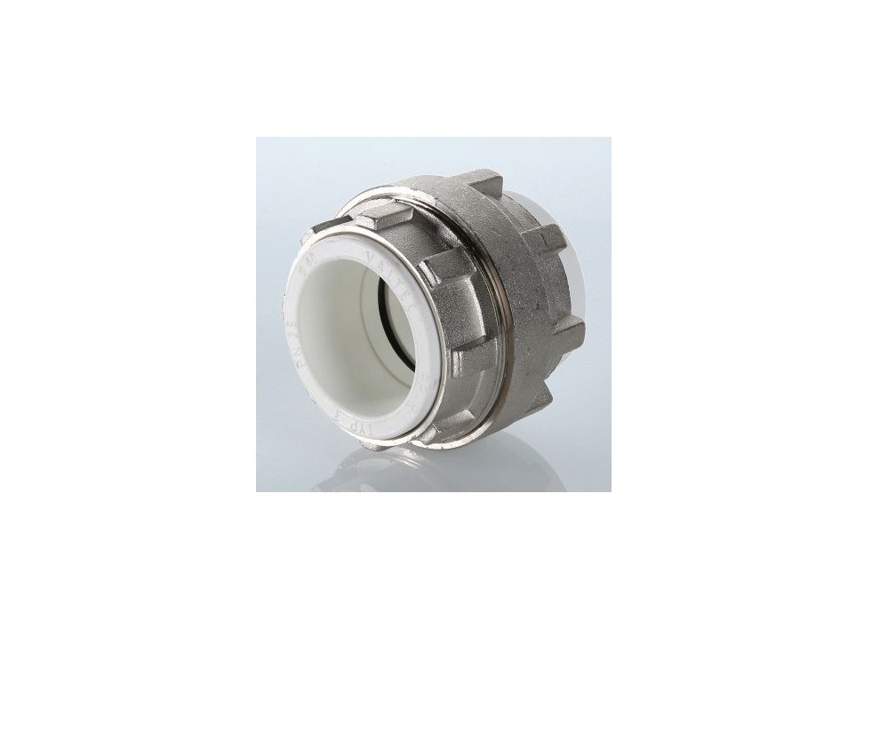 Полипропиленовый фитинг для создания разъемного соединения на полипропиленовом трубопроводе. Соединение частей муфты осуществляется с помощью латунной никелированной накидной гайки. Уплотнительное кольцо выполнено из синтетического каучука EPDM. Монтаж фитинга производится методом раструбной сварки.