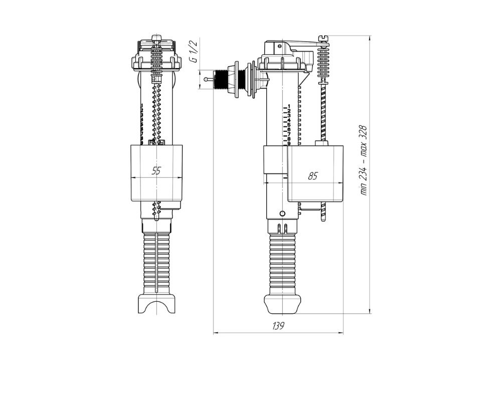 Наливной механизм бачка унитаза АНИ пласт WC5010 с боковой подводкой и пластиковой резьбой диаметром G 1/2.