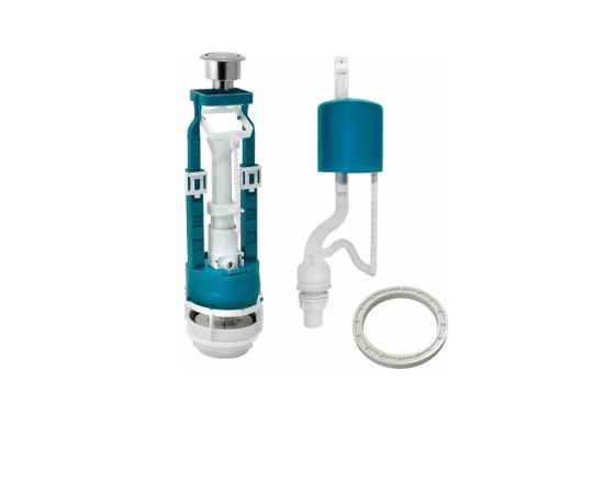 Арматура для унитаза водосливная универсальная СБкпм Инкоэр кнопочная в 1 режиме с нижним подводом. Устройство для подачи и слива воды в унитазе работает в 1 режиме. При установке подсоединяется через нижнюю подводку. Универсальный сливной клапан СБкпм кнопочный с одним режимом слива. Хромированная кнопка нажатия. Для слива необходимо нажать на кнопку смыва. При нажатии сливается весь полезный объем бачка. Монтаж осуществляется в сливной бачок. Сливной клапан СБкпм предназначен для использования в смывных бачках высотой от 290 до 405 мм и с диаметром отверстия в крышке бачка 40 или 26 мм. Установка клапана в бачках с разными отверстиями в крышке возможна благодаря дополнительному переходному кольцу «кпм», которое расположено под кнопкой и входит в комплект сливного клапана СБкпм. Наполнительный клапан НпрН - нижний клапан противодавления с диаметром штуцера 1/2". Арматура оптимальна для установки в местах общественного пользования, где обеспечение гигиены важнее экономии расхода воды.