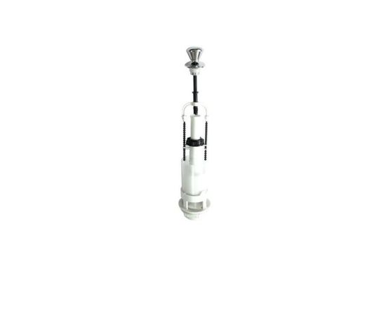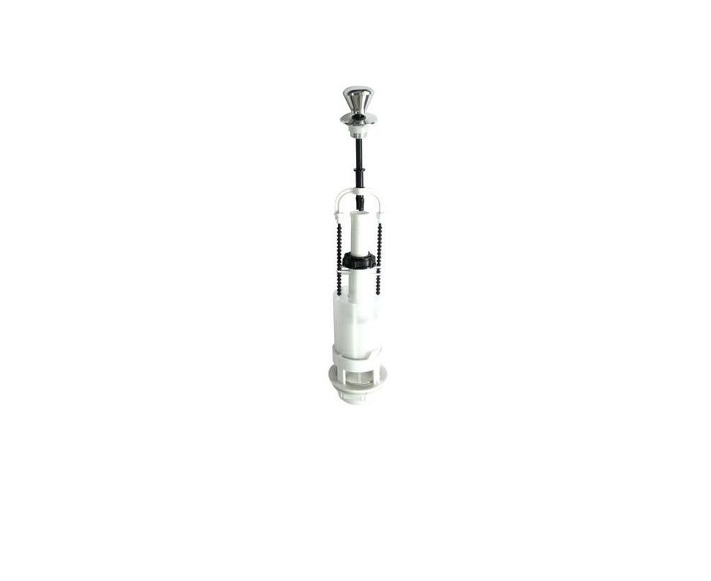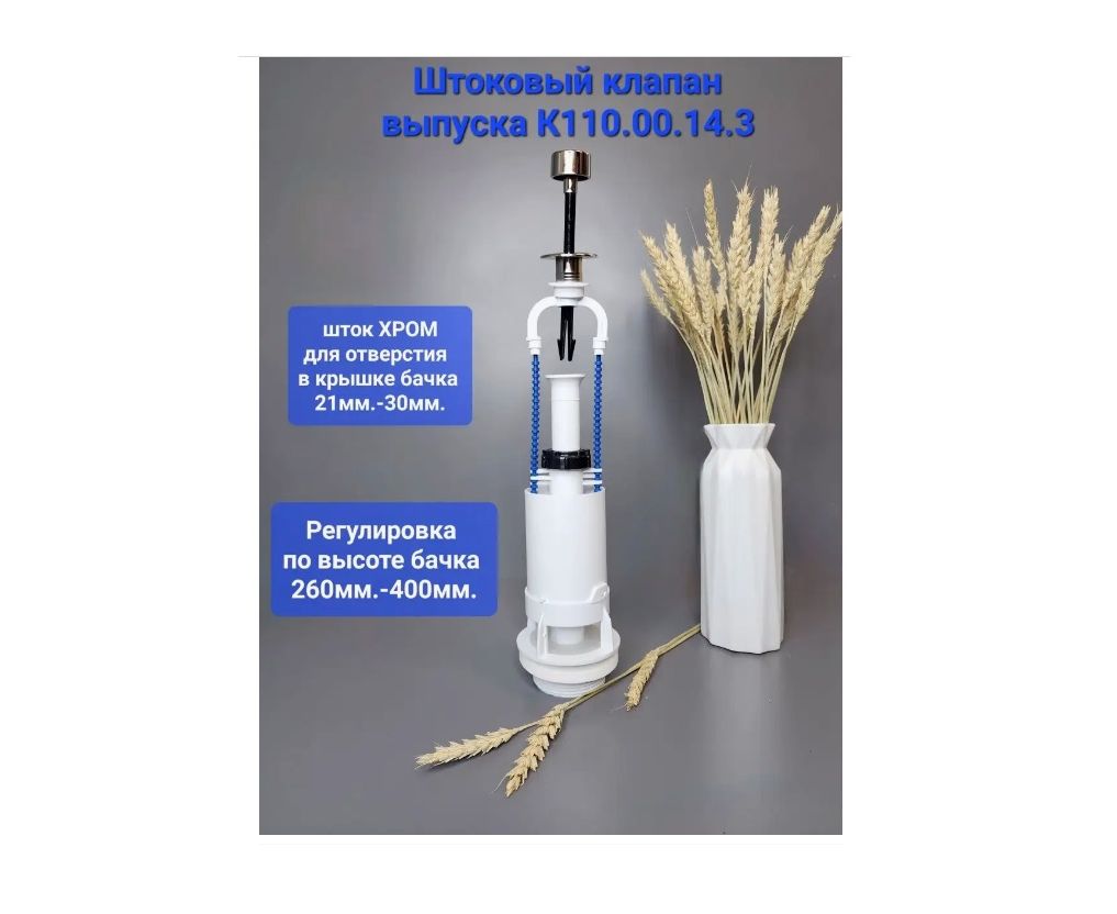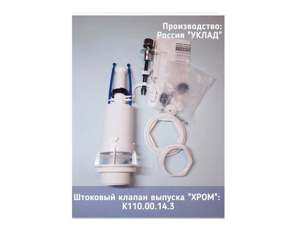 Выпускной клапан штоковый К 100.00.00 с пластиковой ручкой и кнопкой цвета "Хром", комплект крепежа, прокладка между бачком и унитазом К 100., паспорт-инструкция по установке. Для отверстия в крышке бачка диаметром 25мм.