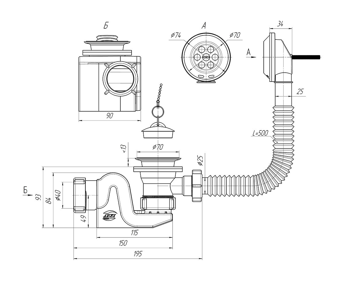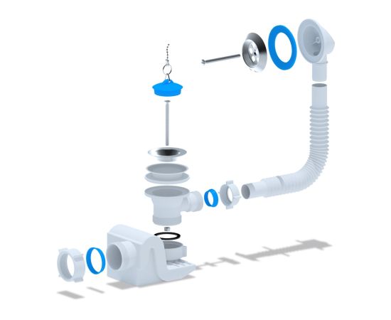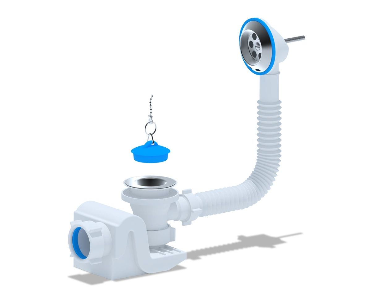 Сифон плоский для ванной с переливом, с выпуском и нерж решеткой. Подключение к канализации 40